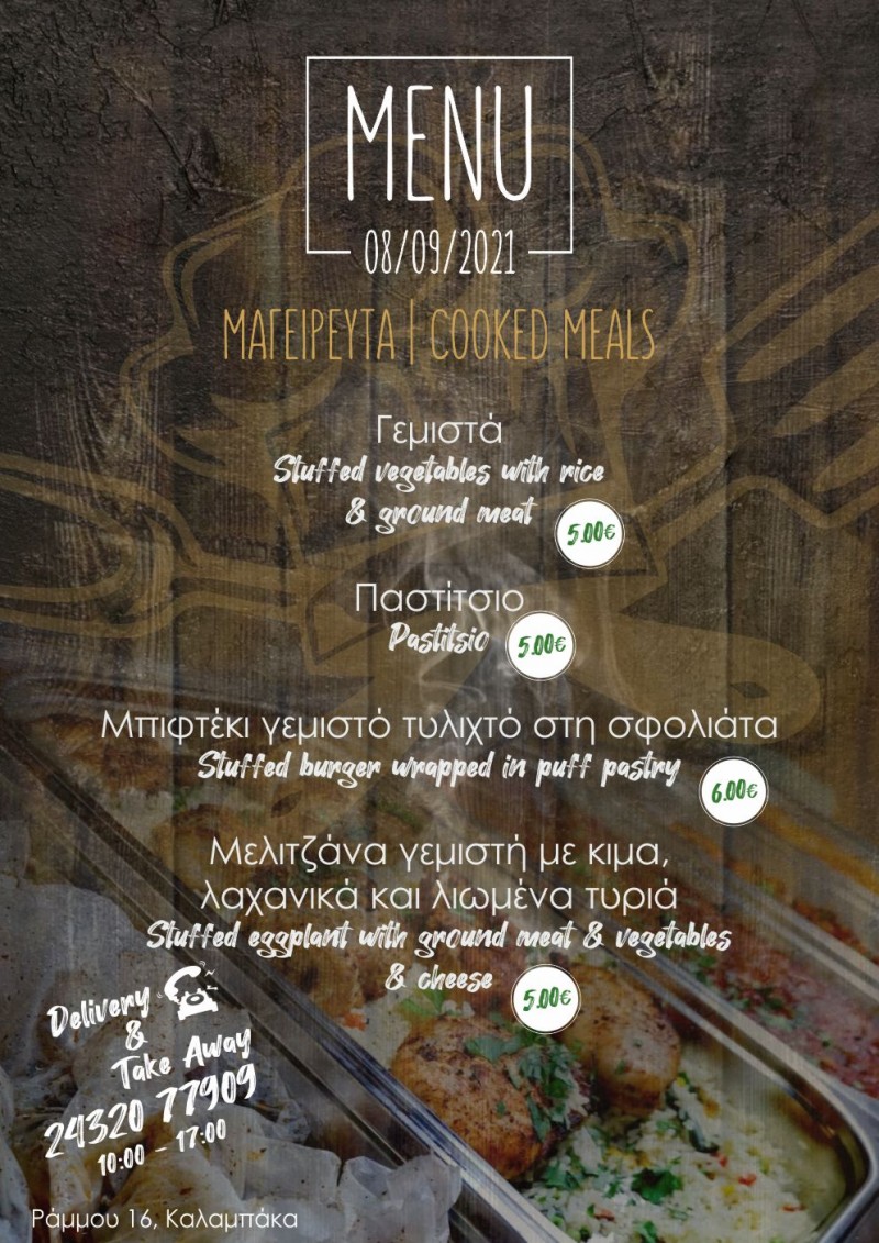 Το Οινομαγειρείο “Ο ΜΠΕΛΛ… ΑΛΗΣ” της Καλαμπάκας με το ποιοτικό φαγητό και τις ξεχωριστές του προτάσεις είναι και σήμερα κοντά σας με ειδικά διαμορφωμένο μενού!