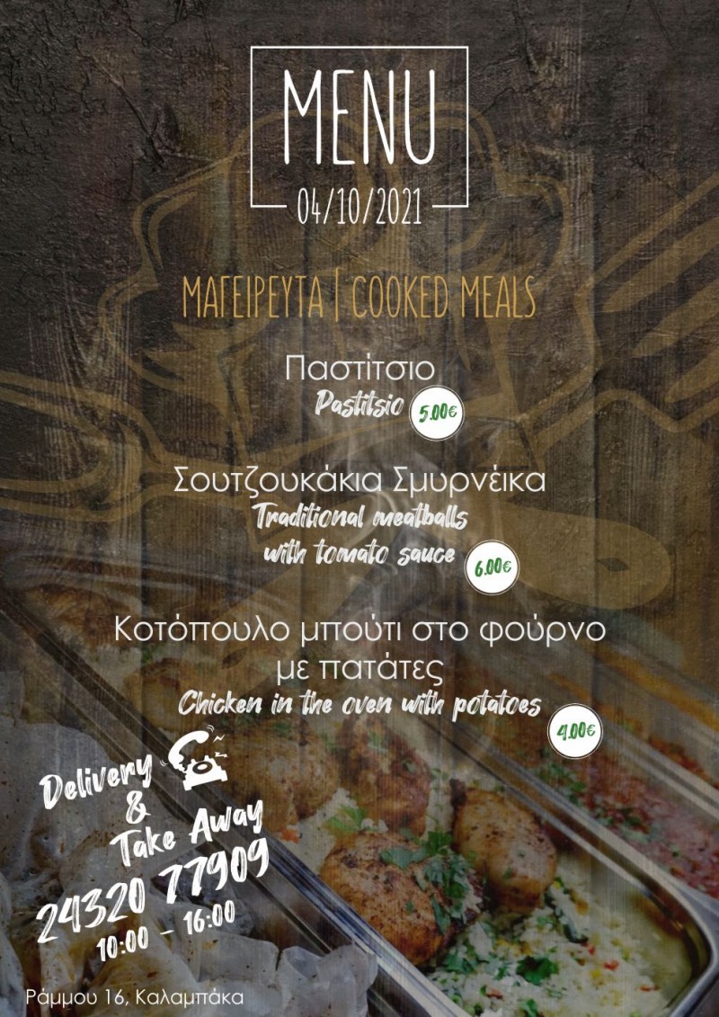 Το Οινομαγειρείο “Ο ΜΠΕΛΛ… ΑΛΗΣ” της Καλαμπάκας με το ποιοτικό φαγητό και τις ξεχωριστές του προτάσεις είναι και σήμερα κοντά σας με ειδικά διαμορφωμένο μενού!