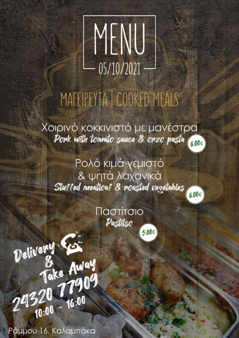 Το Οινομαγειρείο “Ο ΜΠΕΛΛ… ΑΛΗΣ” της Καλαμπάκας με το ποιοτικό φαγητό και τις ξεχωριστές του προτάσεις είναι και σήμερα κοντά σας με ειδικά διαμορφωμένο μενού!