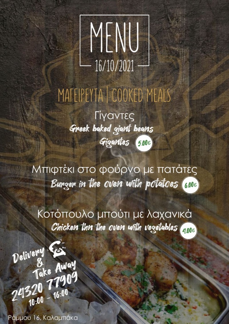 Το Οινομαγειρείο “Ο ΜΠΕΛΛ… ΑΛΗΣ” της Καλαμπάκας με το ποιοτικό φαγητό και τις ξεχωριστές του προτάσεις είναι και σήμερα κοντά σας με ειδικά διαμορφωμένο μενού!
