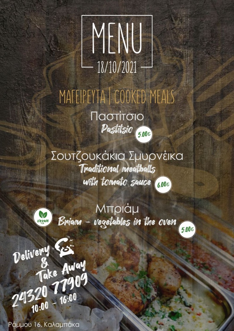 Το Οινομαγειρείο “Ο ΜΠΕΛΛ… ΑΛΗΣ” της Καλαμπάκας με το ποιοτικό φαγητό και τις ξεχωριστές του προτάσεις είναι και σήμερα κοντά σας με ειδικά διαμορφωμένο μενού!