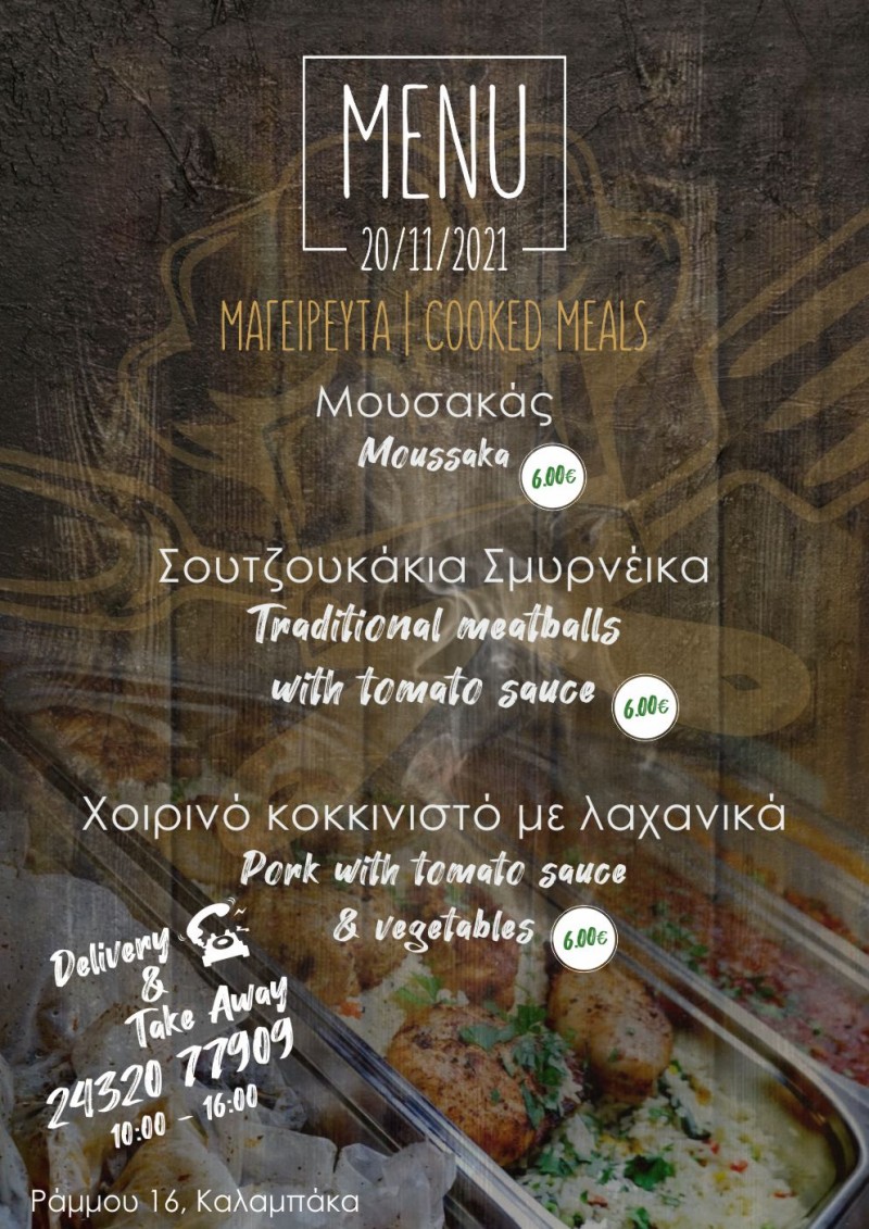 Το Οινομαγειρείο “Ο ΜΠΕΛΛ… ΑΛΗΣ” της Καλαμπάκας με το ποιοτικό φαγητό και τις ξεχωριστές του προτάσεις είναι και σήμερα κοντά σας με ειδικά διαμορφωμένο μενού!