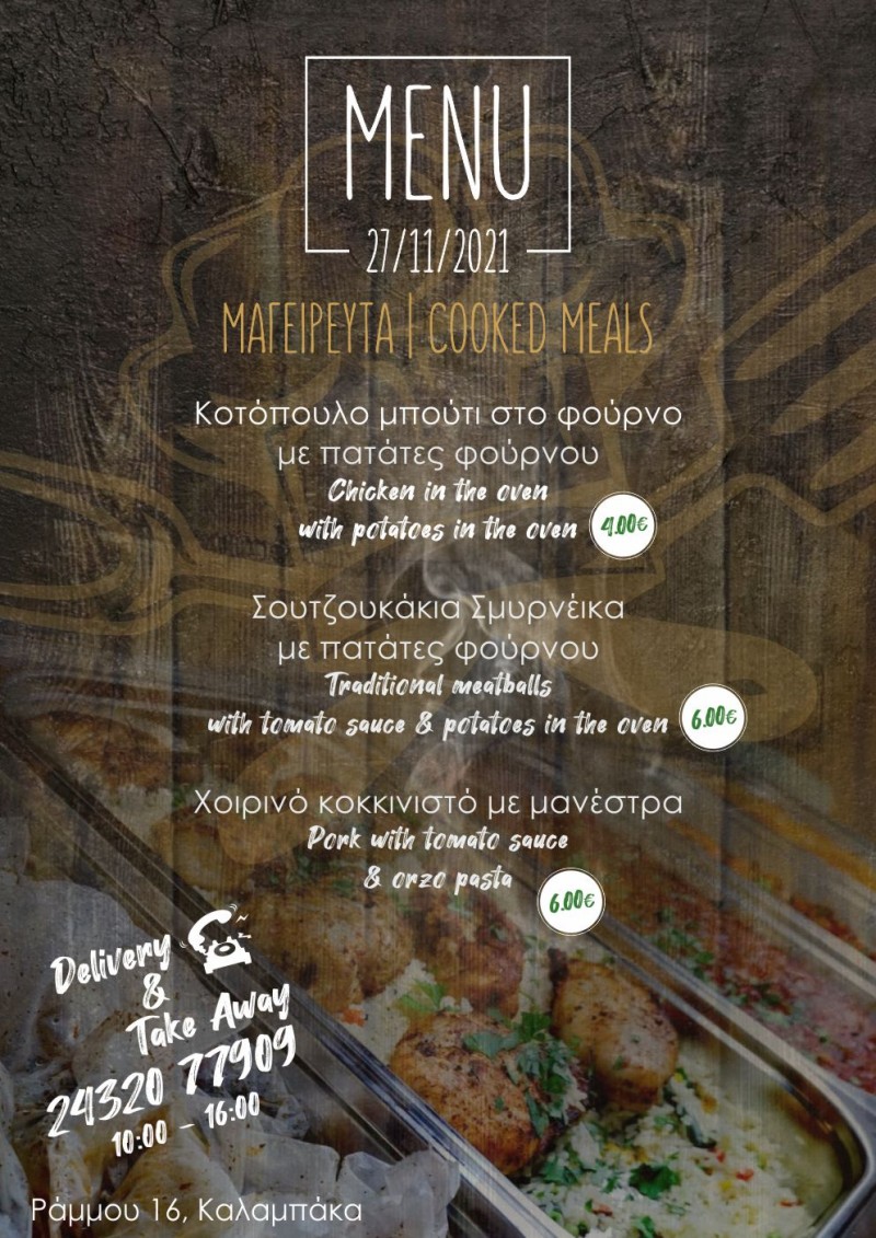 Το Οινομαγειρείο “Ο ΜΠΕΛΛ… ΑΛΗΣ” της Καλαμπάκας με το ποιοτικό φαγητό και τις ξεχωριστές του προτάσεις είναι και σήμερα κοντά σας με ειδικά διαμορφωμένο μενού!