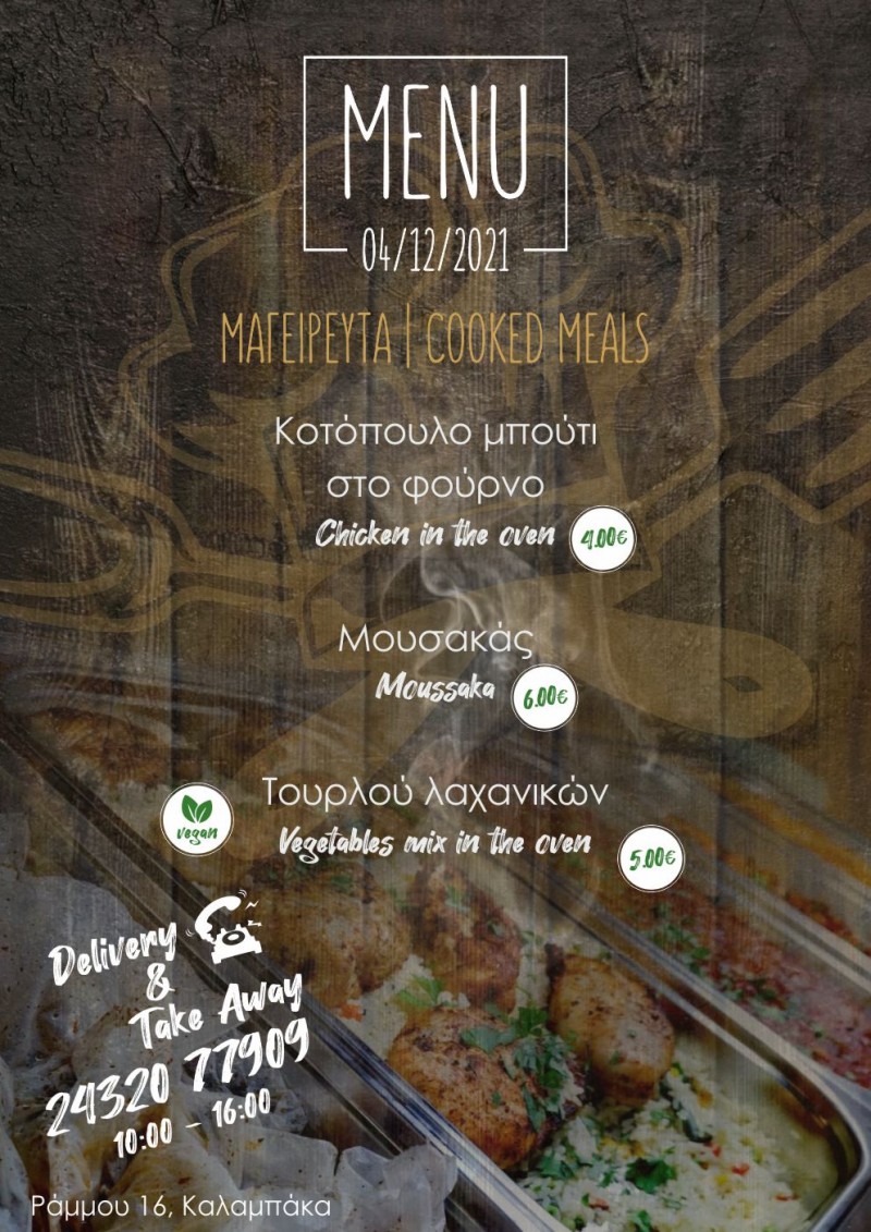 Το Οινομαγειρείο “Ο ΜΠΕΛΛ… ΑΛΗΣ” της Καλαμπάκας με το ποιοτικό φαγητό και τις ξεχωριστές του προτάσεις είναι και σήμερα κοντά σας με ειδικά διαμορφωμένο μενού!