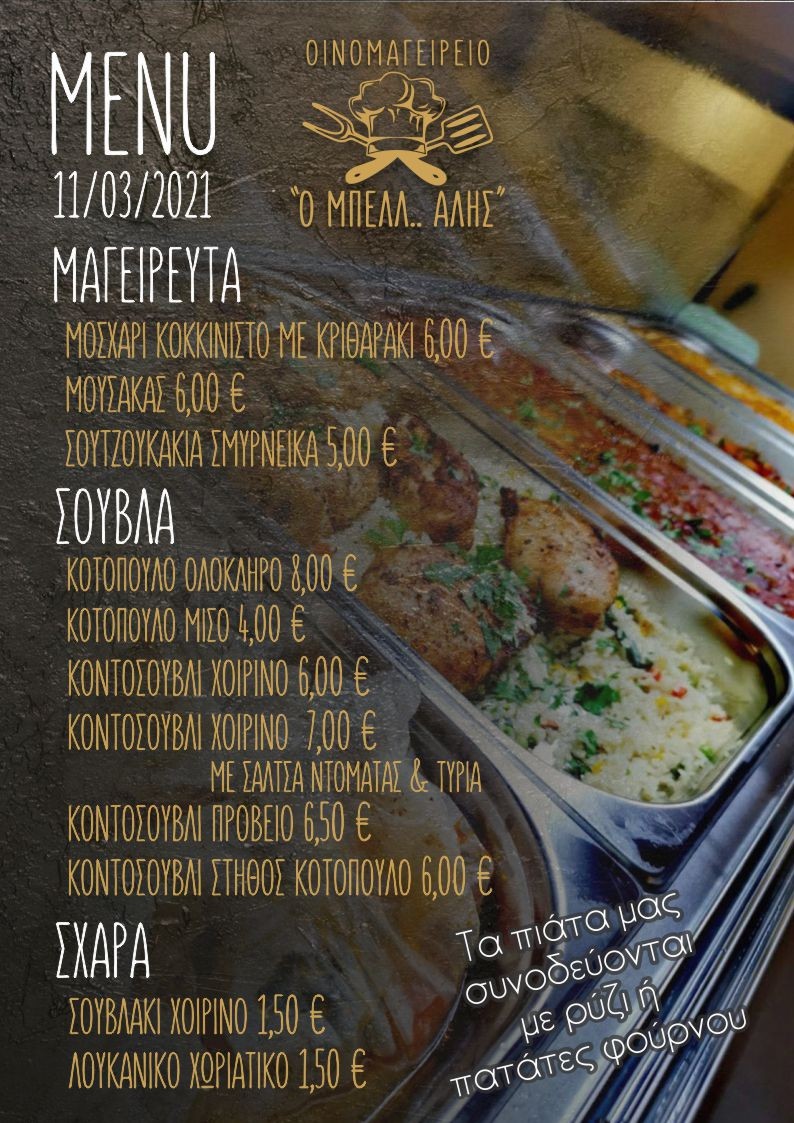 Το σημερινό μενού στο Οινομαγειρείο “ Ο ΜΠΕΛΛ… ΑΛΗΣ”