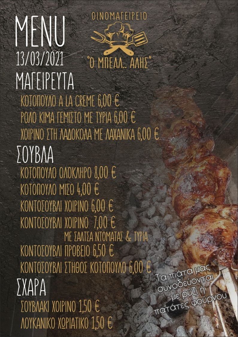 Το σημερινό μενού στο Οινομαγειρείο “ Ο ΜΠΕΛΛ… ΑΛΗΣ”