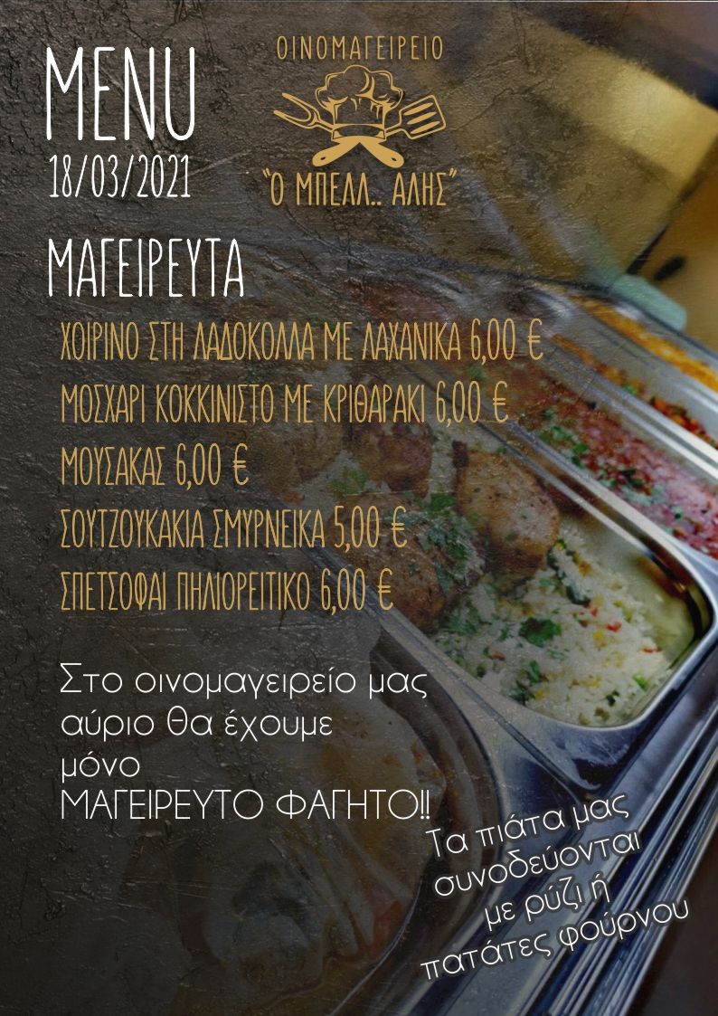 Το Οινομαγειρείο “Ο ΜΠΕΛΛ.. ΑΛΗΣ” της Καλαμπάκας με το ποιοτικό φαγητό και τις ξεχωριστές του προτάσεις και σήμερα είναι κοντά σας με νέο μενού.