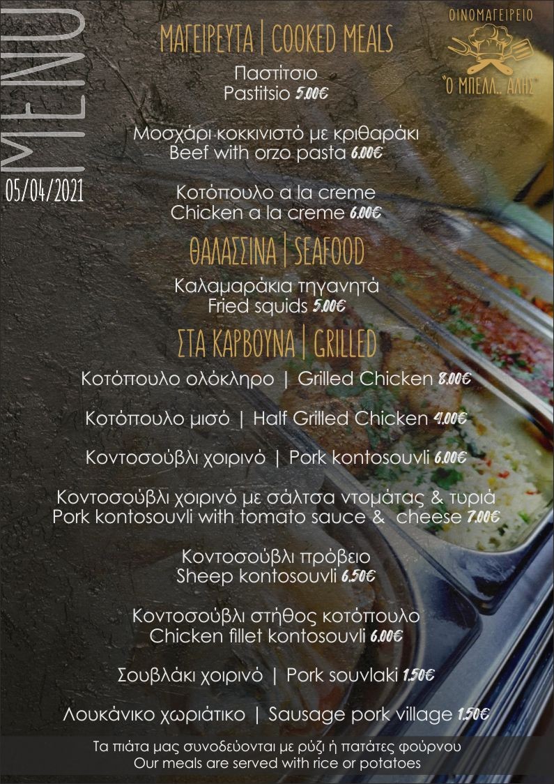Το Οινομαγειρείο “Ο ΜΠΕΛΛ.. ΑΛΗΣ” της Καλαμπάκας με το ποιοτικό φαγητό και τις ξεχωριστές του προτάσεις και σήμερα είναι κοντά σας με νέο μενού.