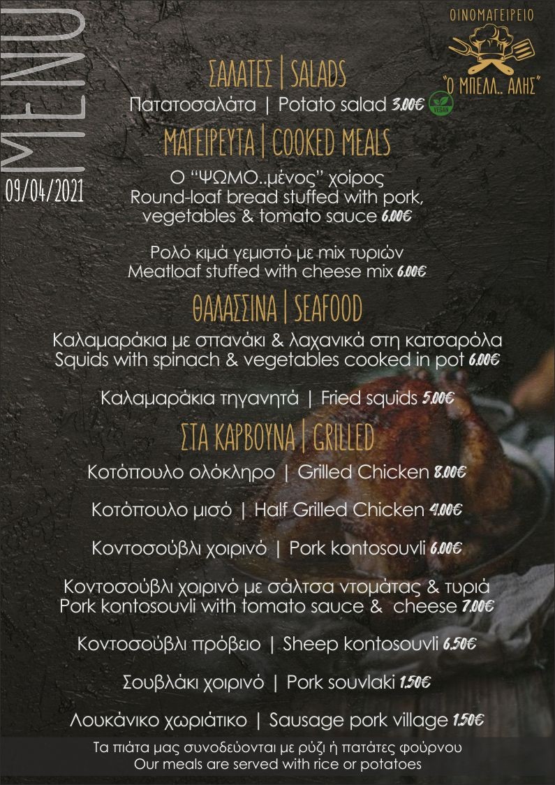 Το σημερινό μενού στο Οινομαγειρείο “ Ο ΜΠΕΛΛ… ΑΛΗΣ”