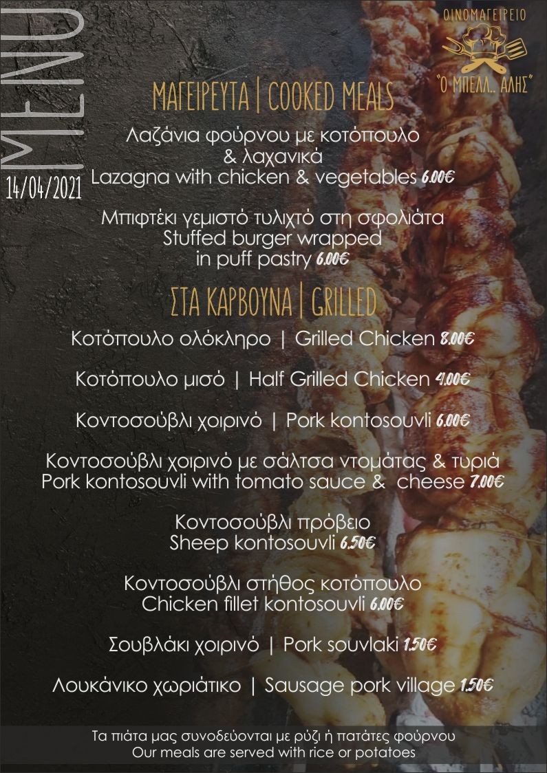Το Οινομαγειρείο “Ο ΜΠΕΛΛ.. ΑΛΗΣ” της Καλαμπάκας με το ποιοτικό φαγητό και τις ξεχωριστές του προτάσεις και σήμερα είναι κοντά σας με νέο μενού.