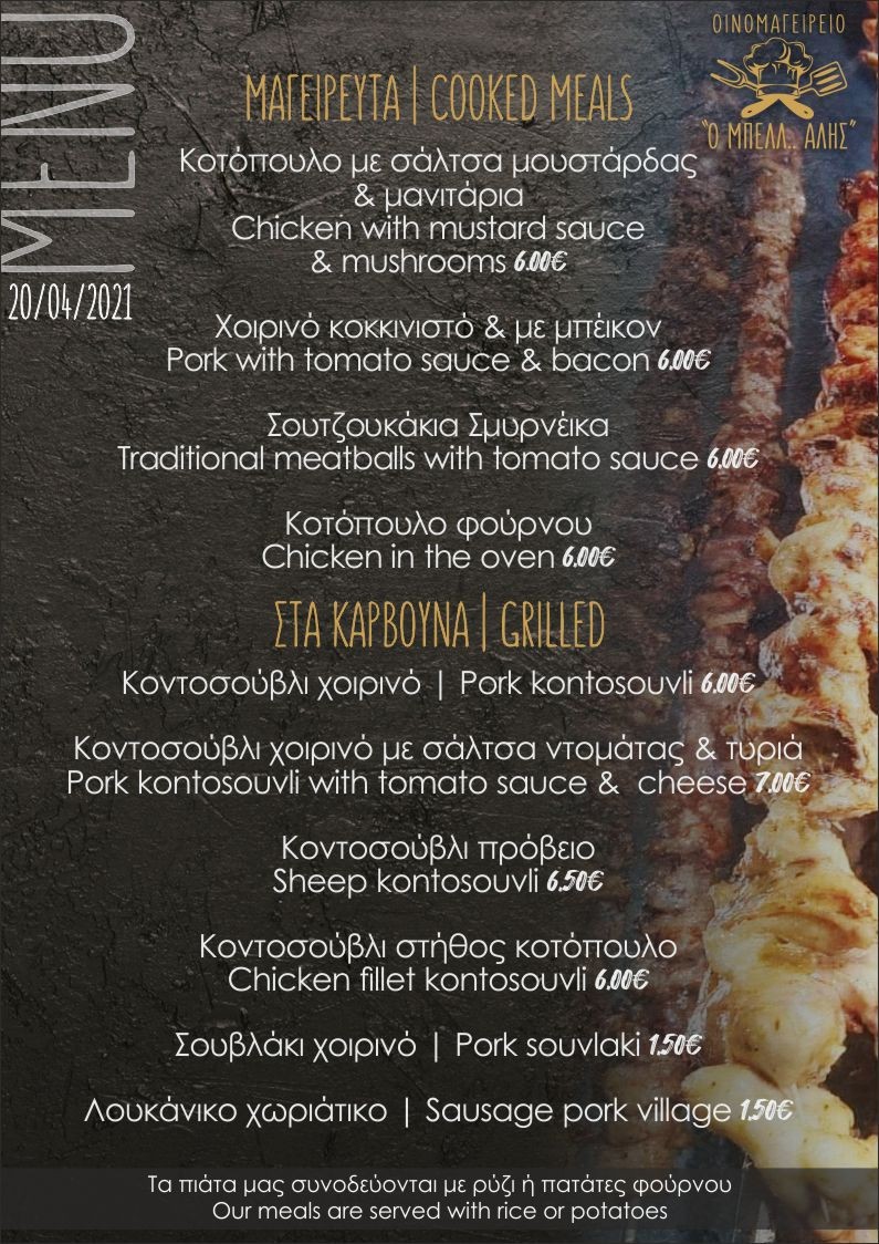 Το σημερινό μενού στο Οινομαγειρείο “ Ο ΜΠΕΛΛ… ΑΛΗΣ”