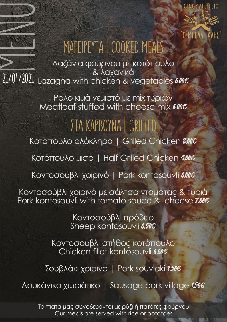 Το Οινομαγειρείο “Ο ΜΠΕΛΛ.. ΑΛΗΣ” της Καλαμπάκας με το ποιοτικό φαγητό και τις ξεχωριστές του προτάσεις και σήμερα είναι κοντά σας με νέο μενού.
