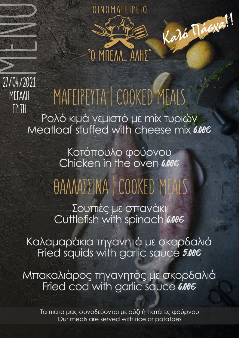 Το Οινομαγειρείο “Ο ΜΠΕΛΛ.. ΑΛΗΣ” της Καλαμπάκας με το ποιοτικό φαγητό και τις ξεχωριστές του προτάσεις είναι και σήμερα κοντά σας με ειδικά διαμορφωμένο μενού!