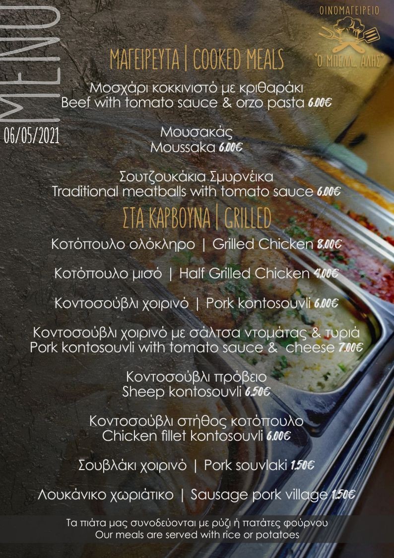 Το σημερινό μενού στο Οινομαγειρείο “ Ο ΜΠΕΛΛ… ΑΛΗΣ”