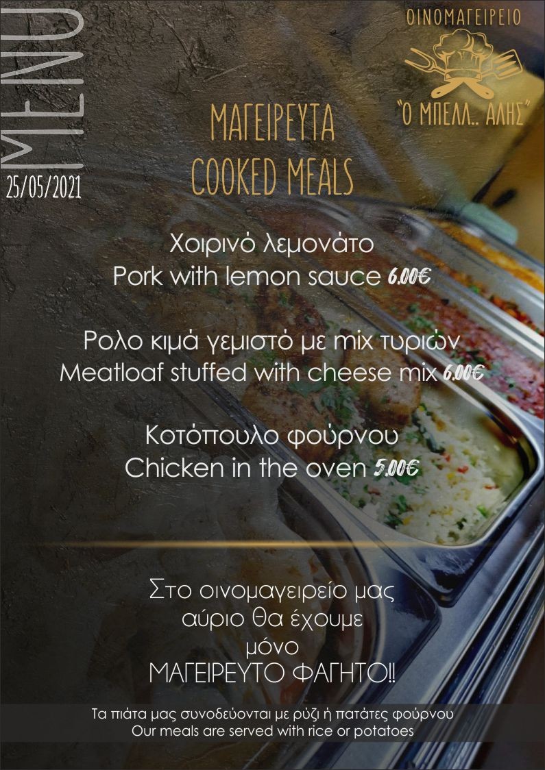 Το σημερινό μενού στο Οινομαγειρείο “ Ο ΜΠΕΛΛ… ΑΛΗΣ”