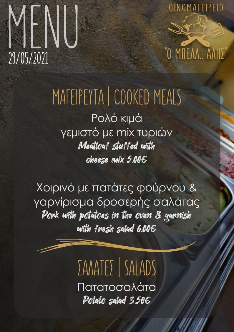 Το σημερινό μενού στο Οινομαγειρείο “ Ο ΜΠΕΛΛ… ΑΛΗΣ”