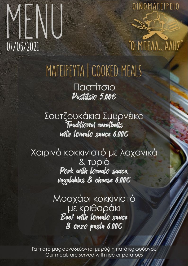 Το Οινομαγειρείο “Ο ΜΠΕΛΛ.. ΑΛΗΣ” της Καλαμπάκας με το ποιοτικό φαγητό και τις ξεχωριστές του προτάσεις είναι και σήμερα κοντά σας με ειδικά διαμορφωμένο μενού!