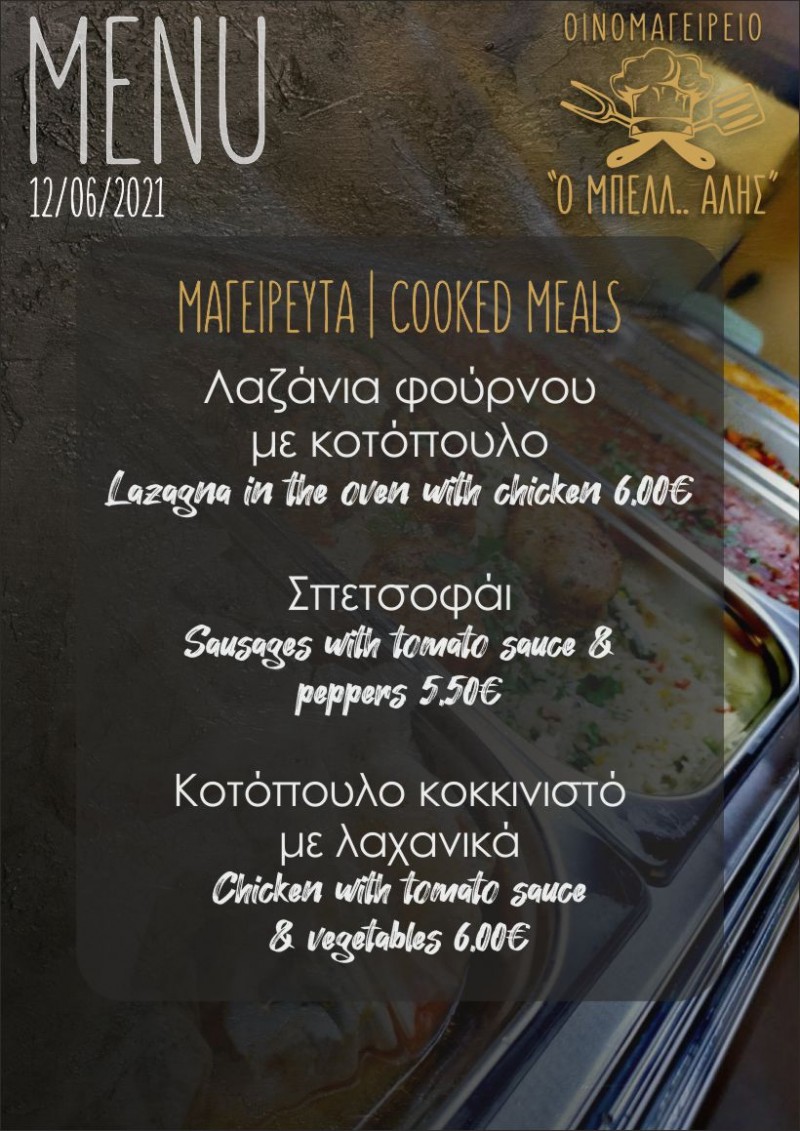 Το σημερινό μενού στο Οινομαγειρείο “ Ο ΜΠΕΛΛ… ΑΛΗΣ”