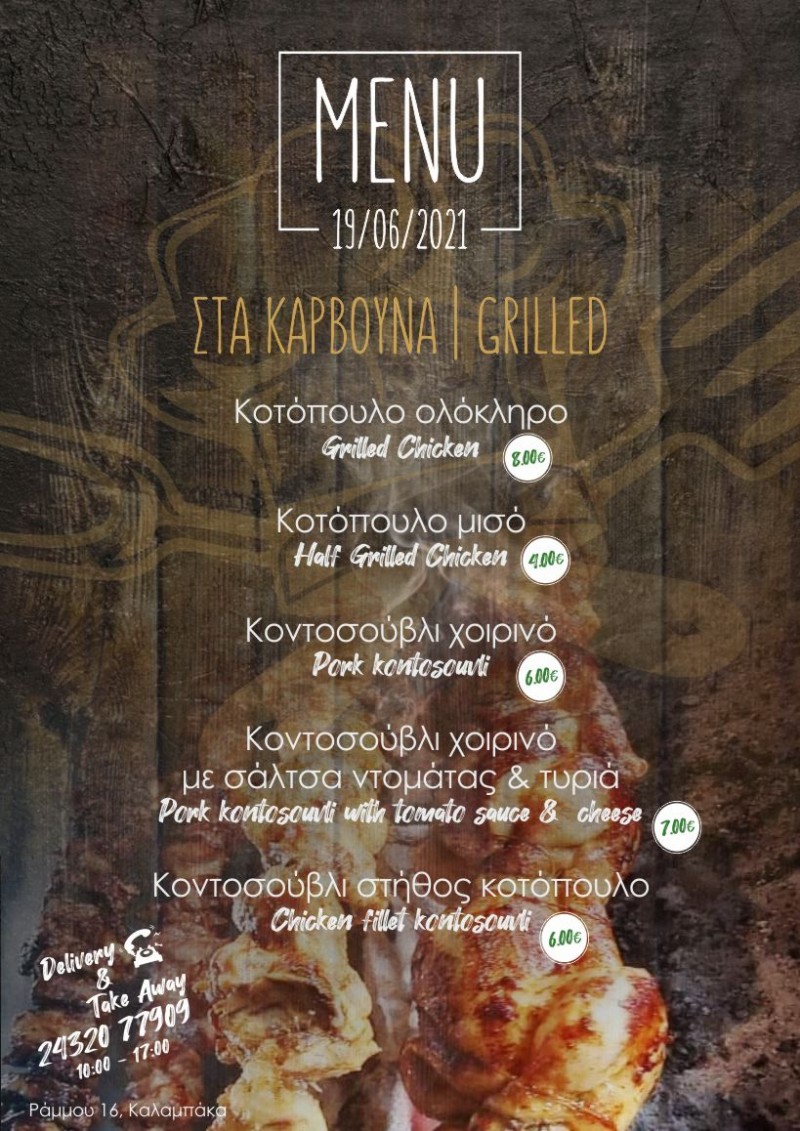 Τηλέφωνο επικοινωνίας – παραγγελιών και delivery 24320 77909.