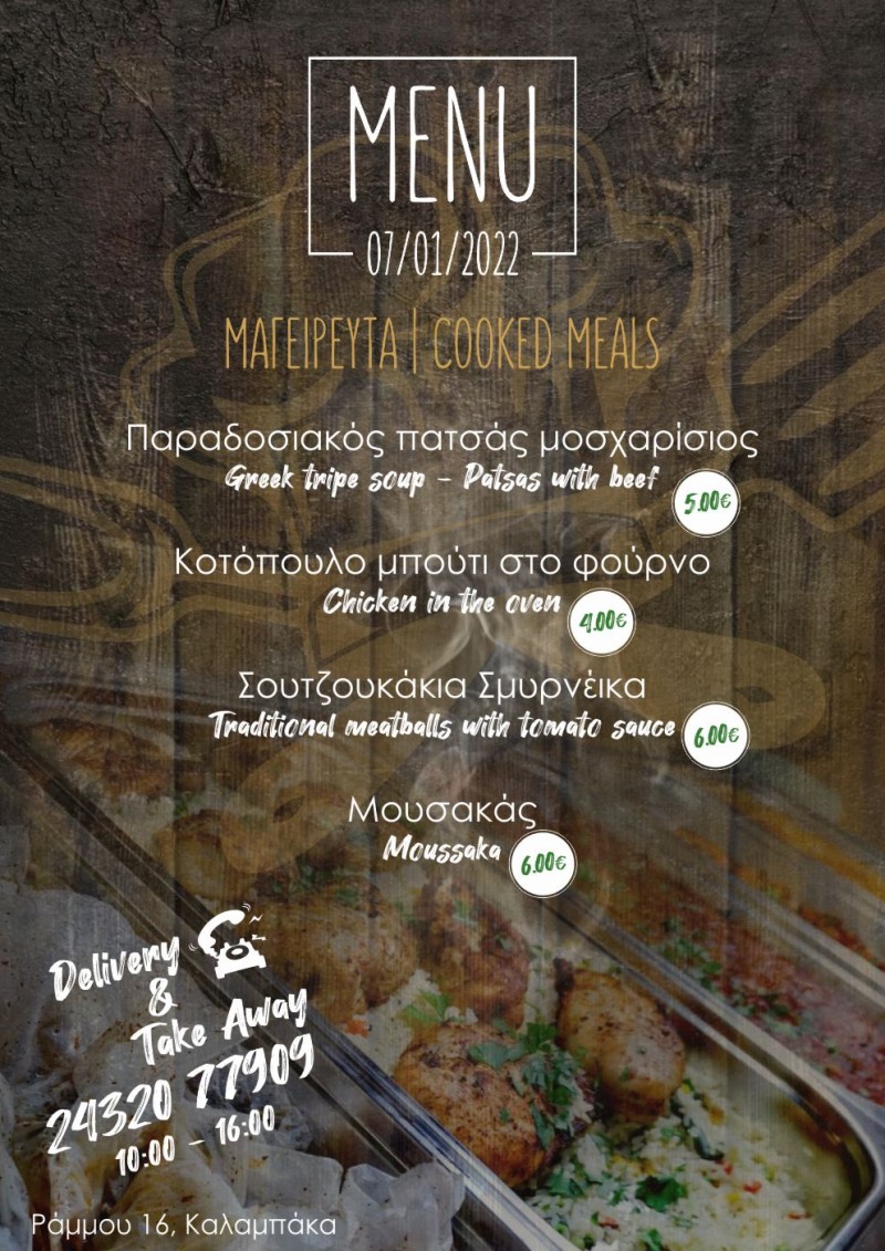 Το σημερινό μενού στο Οινομαγειρείο της Καλαμπάκας “Ο ΜΠΕΛΛ… ΑΛΗΣ”