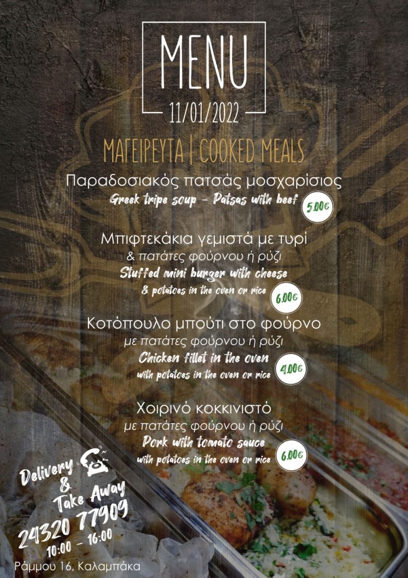 Το σημερινό μενού στο Οινομαγειρείο της Καλαμπάκας “Ο ΜΠΕΛΛ… ΑΛΗΣ”