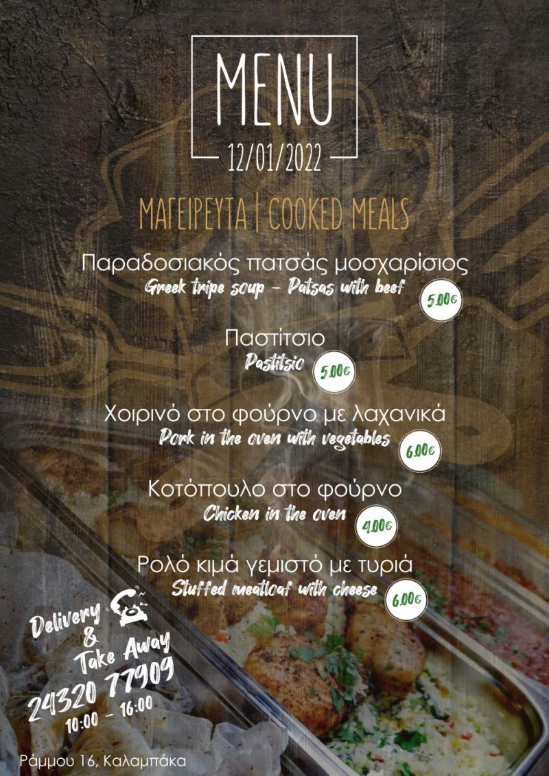 Το σημερινό μενού στο Οινομαγειρείο της Καλαμπάκας “Ο ΜΠΕΛΛ… ΑΛΗΣ”