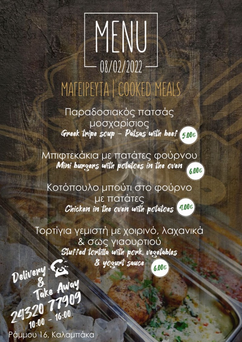 Το σημερινό μενού στο Οινομαγειρείο της Καλαμπάκας “Ο ΜΠΕΛΛ… ΑΛΗΣ”