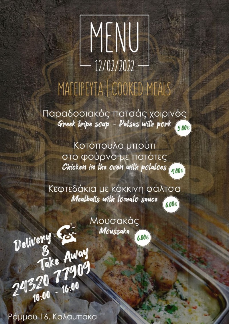 Το σημερινό μενού στο Οινομαγειρείο της Καλαμπάκας “Ο ΜΠΕΛΛ… ΑΛΗΣ”