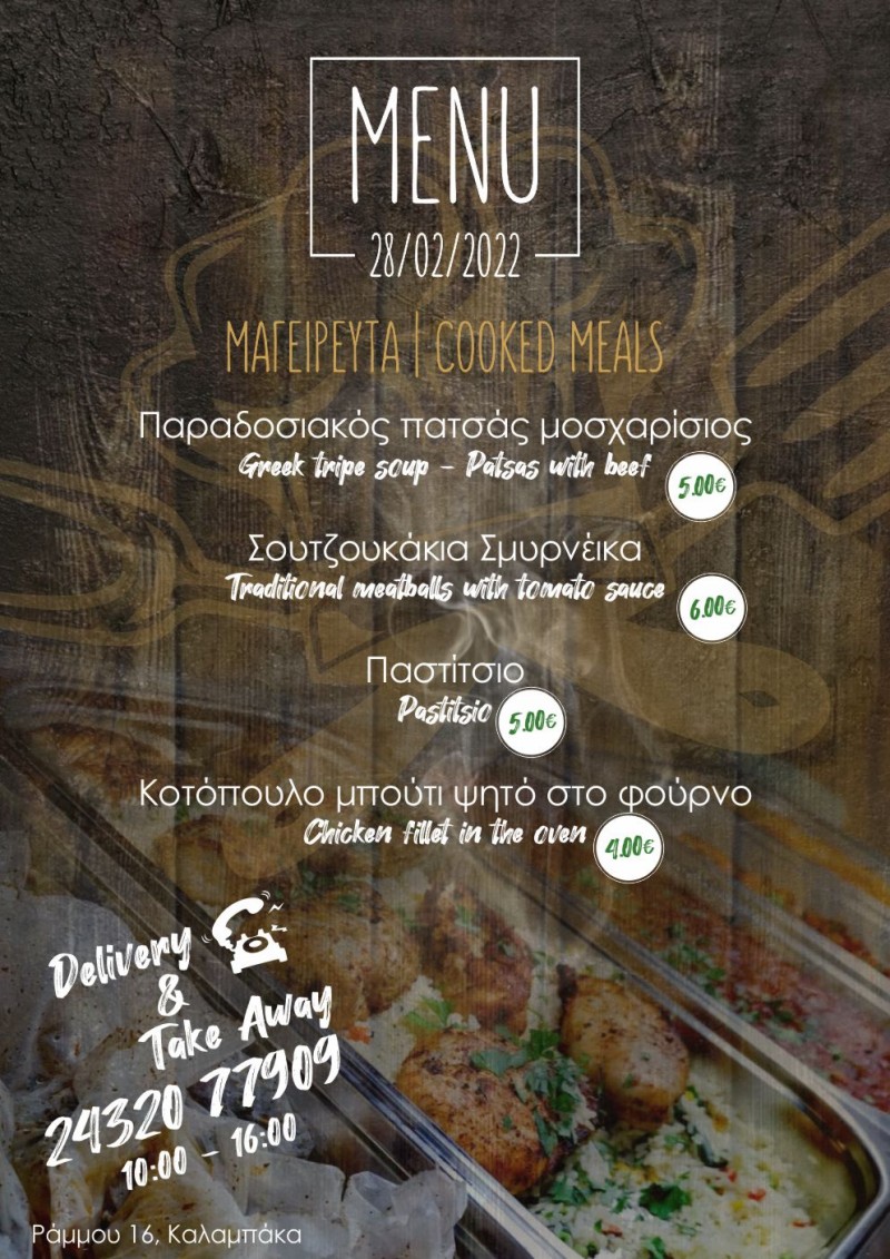 Το σημερινό μενού στο Οινομαγειρείο της Καλαμπάκας “Ο ΜΠΕΛΛ… ΑΛΗΣ”