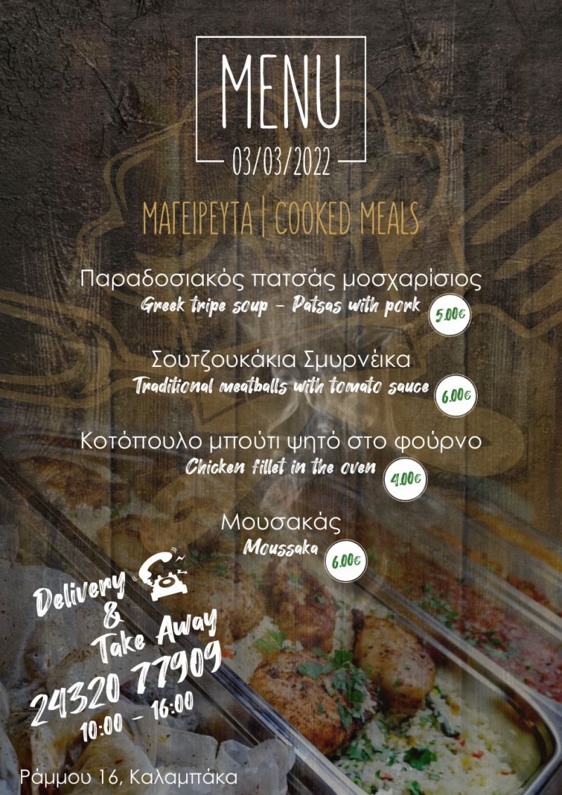 Το σημερινό μενού στο Οινομαγειρείο της Καλαμπάκας “Ο ΜΠΕΛΛ… ΑΛΗΣ”