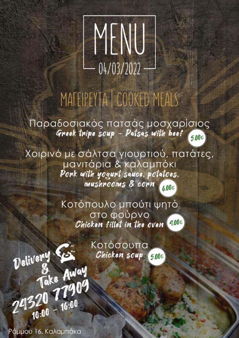 Το σημερινό μενού στο Οινομαγειρείο της Καλαμπάκας “Ο ΜΠΕΛΛ… ΑΛΗΣ”