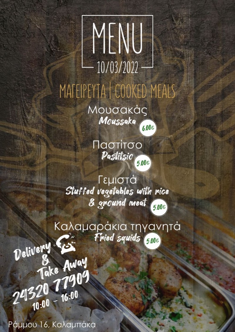 Το σημερινό μενού στο Οινομαγειρείο της Καλαμπάκας “Ο ΜΠΕΛΛ… ΑΛΗΣ”