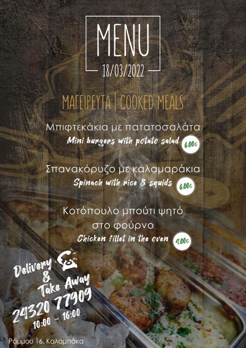 Το σημερινό μενού στο Οινομαγειρείο της Καλαμπάκας “Ο ΜΠΕΛΛ… ΑΛΗΣ”