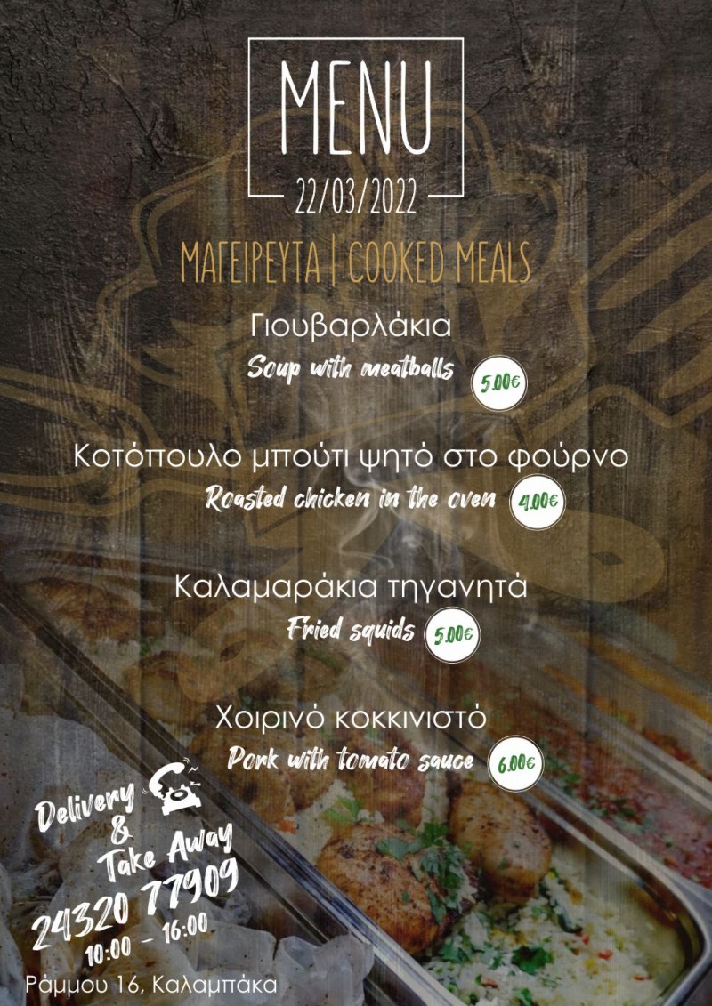 Το σημερινό μενού στο Οινομαγειρείο της Καλαμπάκας “Ο ΜΠΕΛΛ… ΑΛΗΣ”