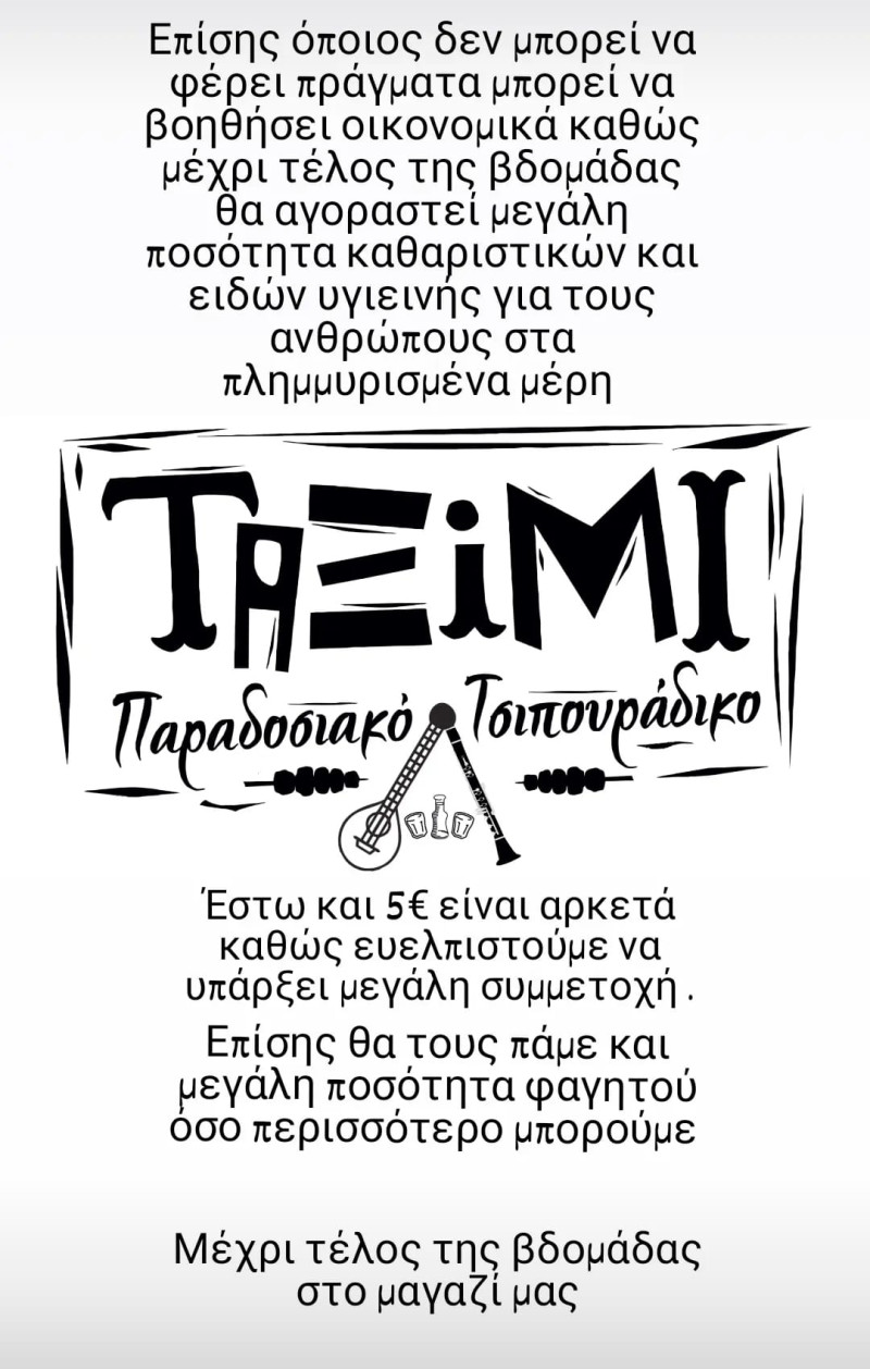Από την διεύθυνση του καταστήματος ΤΑΞΙΜΙ στην Καλαμπάκα, ακολουθεί ανακοίνωση σχετικά με την προσπάθεια για βοήθεια προς τους πλημμυροπαθείς.