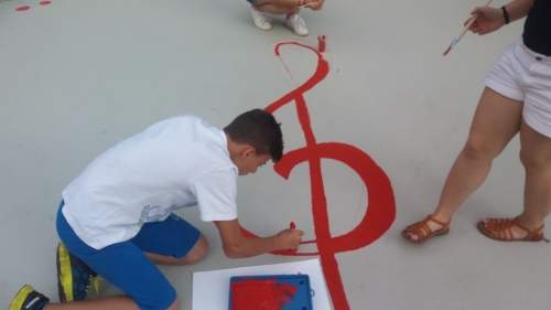 Πολλοί μαθητές της, όλων των ηλικιών ,συγκεντρώθηκαν στο Θεατράκι της πλατείας Δημουλά, και παίρνοντας πινέλα και χρώματα «κόσμησαν», μουσικά, ένα μεγάλο μέρος του .