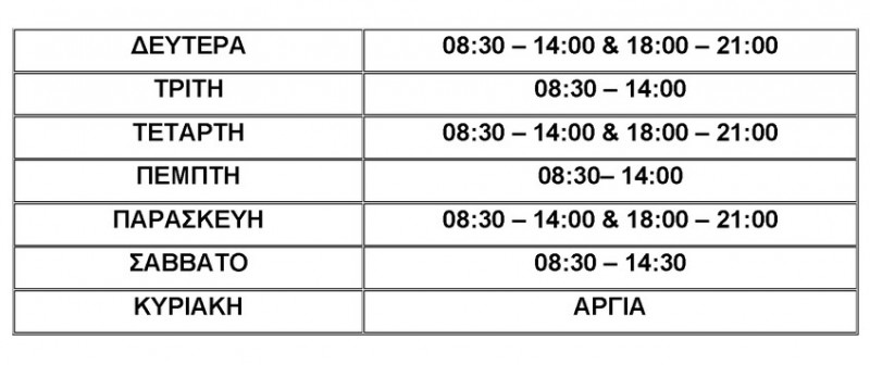 Το προτεινόμενο ωράριο είναι το ακόλουθο: