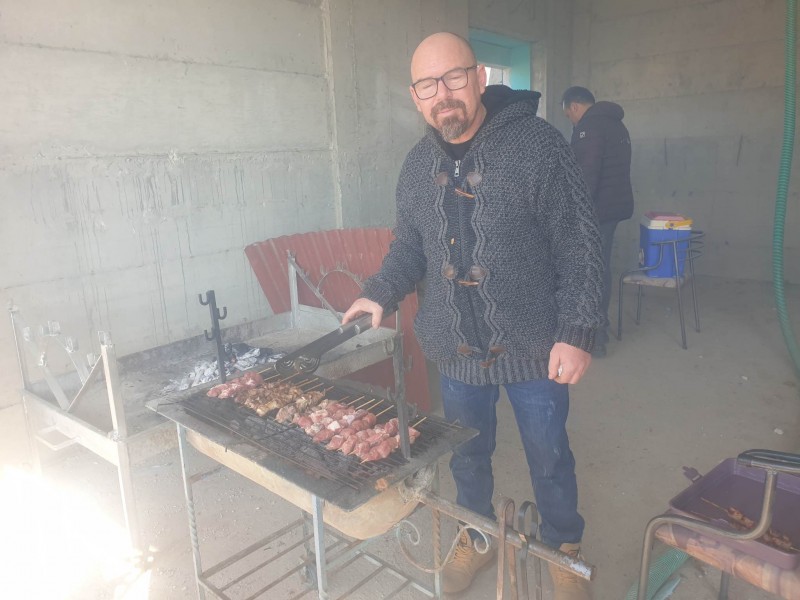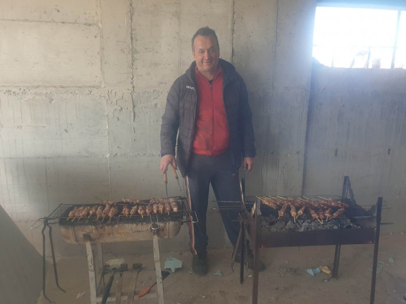 Να ευχαριστούμε δυο γονείς που μας βοήθησαν να ψήσουμε τα σουβλάκια μας: