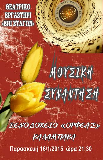 Μουσική συνάντηση πραγματοποιεί απόψε, Παρασκευή 16 Ιανουαρίου το Θεατρικό Εργαστήρι “Επί Σταγών” της πόλης μας.