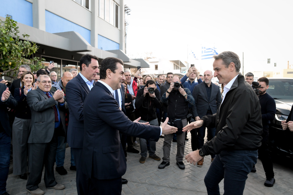 Τον Κυριάκο Μητσοτάκη υποδέχθηκε ο Σκρέκας στα κεντρικά γραφεία της Νέας Δημοκρατίας, για την κοπή της πρωτοχρονιάτικης βασιλόπιτας