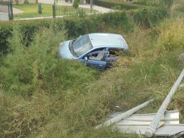 Η σύγκρουση, είχε ως αποτέλεσμα το ΙΧΕ αυτοκίνητο να «προσγειώνεται» σε χαντάκι και ταυτόχρονα από την σύγκρουση να κόβεται κολόνα της ΔΕΗ και πινακίδα οδικής σήμανσης.