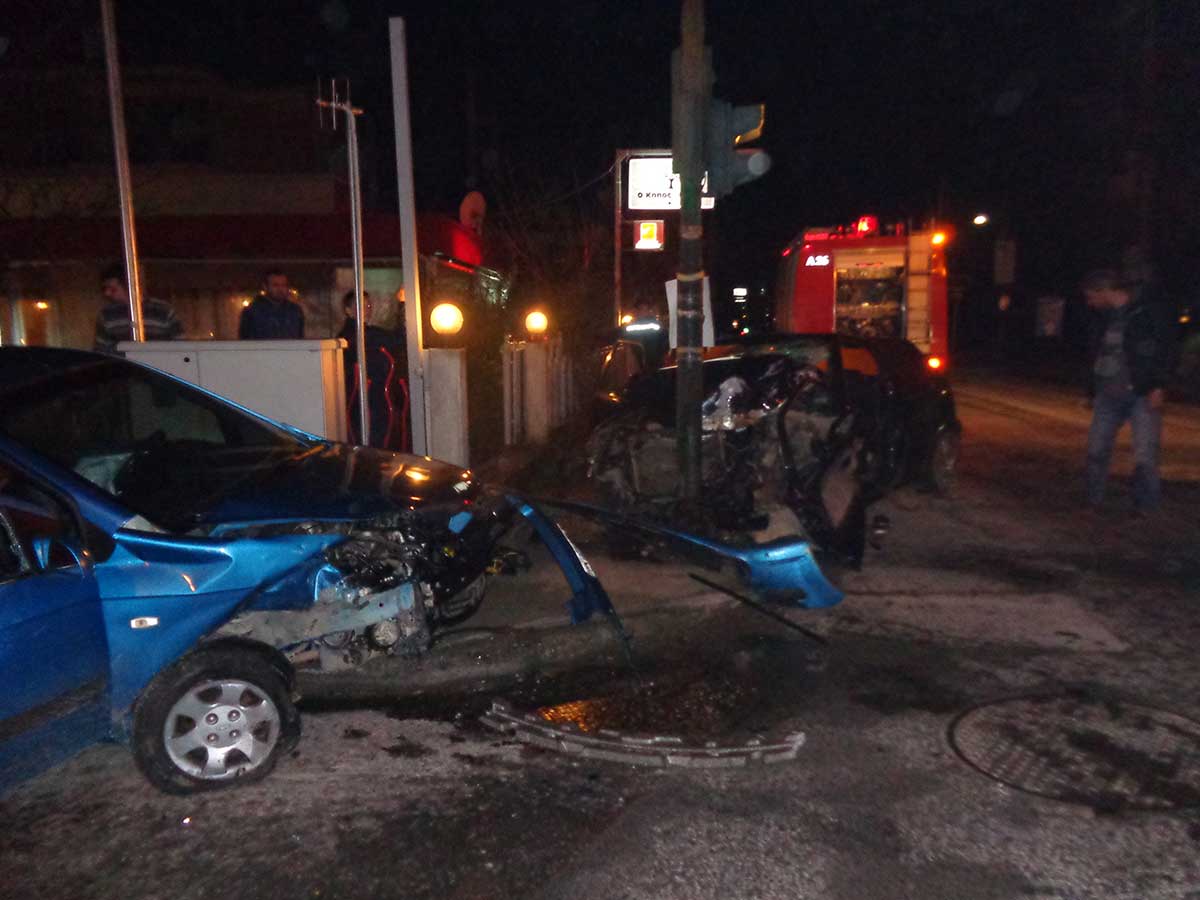 Τρεις τραυματίες στα Τρίκαλα από σφοδρή σύγκρουση αυτοκινήτων
