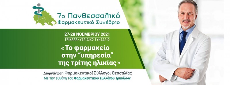 Το φαρμακείο στην “υπηρεσία” της τρίτης ηλικίας» 7o Πανθεσσαλικό Φαρμακευτικό Συνέδριο, 27 και 28 Νοεμβρίου 2021 . Με κεντρικό μήνυμα και άξονα της πλούσιας θεματολογίας του «Το φαρμακείο στην “υπηρεσία” της τρίτης ηλικίας» θα πραγματοποιηθεί το 7ο Πανθεσσαλικό Φαρμακευτικό Συνέδριο, που συνδιοργανώνουν οι Φαρμακευτικοί Σύλλογοι Θεσσαλίας, με την οργανωτική ευθύνη του Φαρμακευτικού Συλλόγου Τρικάλων, στις 27 και 28 Νοεμβρίου 2021, και την αιγίδα του Πανελληνίου Φαρμακευτικού Συλλόγου και του ΙΔΕΕΑΦ.