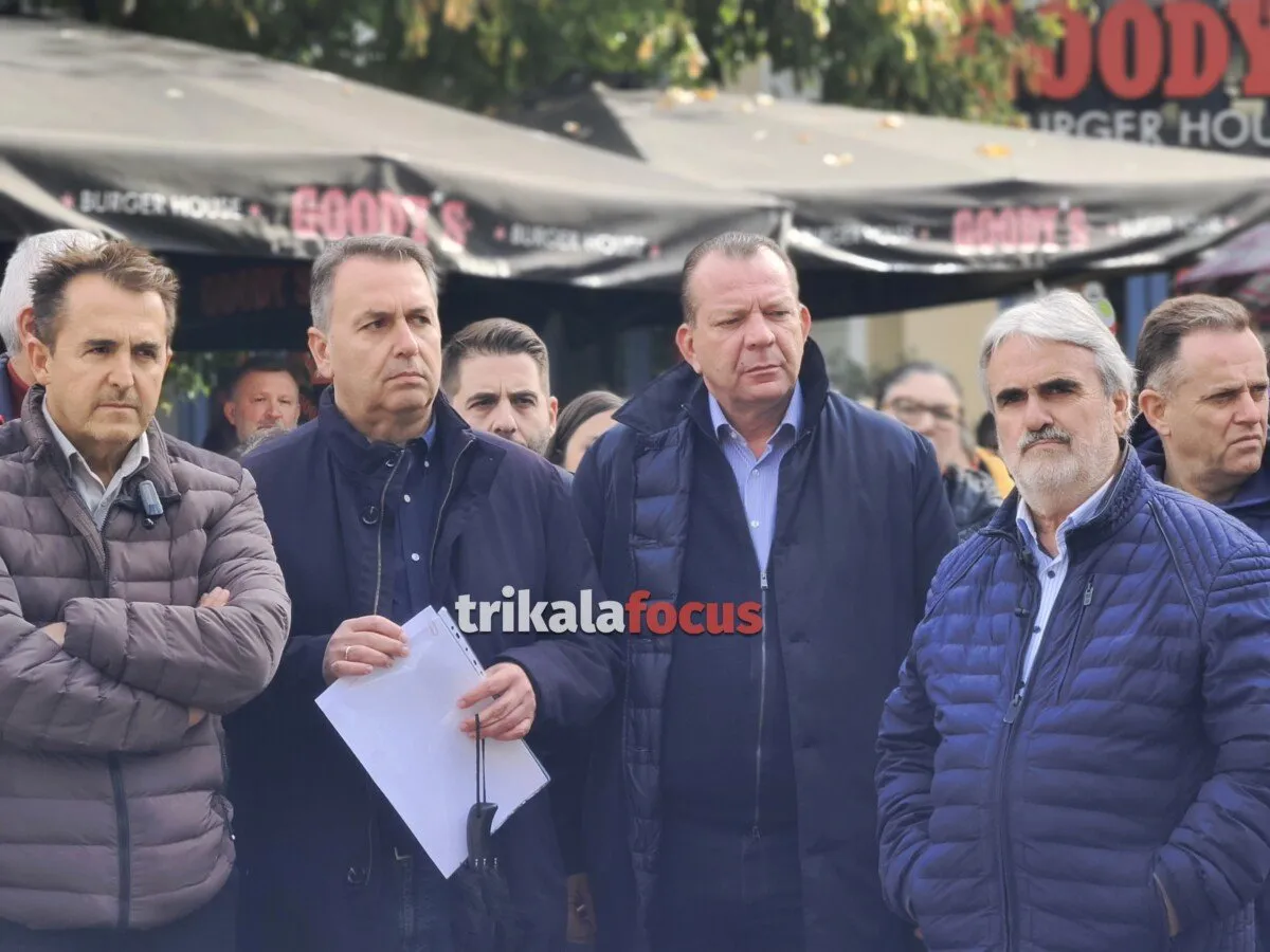 Στην πλατεία Ρήγα Φεραίου υπήρξαν χαιρετισμοί από εκπροσώπους των συμμετεχόντων και ακολούθησε πορεία με προορισμό την πρώην Νομαρχία, όπου απόντος του Χρήστου Μιχαλάκη, επιδόθηκε υπόμνημα διαμαρτυρίας στον Διευθυντή της Περιφερειακής Ενότητας Τρικάλων Γιώργο Καρανάσιο.