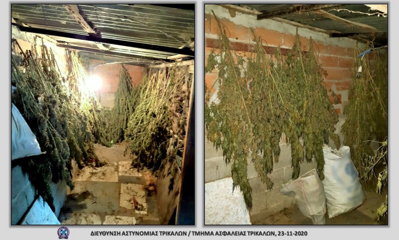 Επιπλέον, σε νομότυπη έρευνα που διενεργήθηκε από αστυνομικούς του Τμήματος Ασφάλειας Τρικάλων στην οικία και σε αποθήκη του δράστη, στην ευρύτερη περιοχή των Τρικάλων, βρέθηκαν με τη συνδρομή του αστυνομικού σκύλου ανίχνευσης ναρκωτικών ουσιών “FLEX” και κατασχέθηκαν: