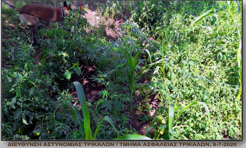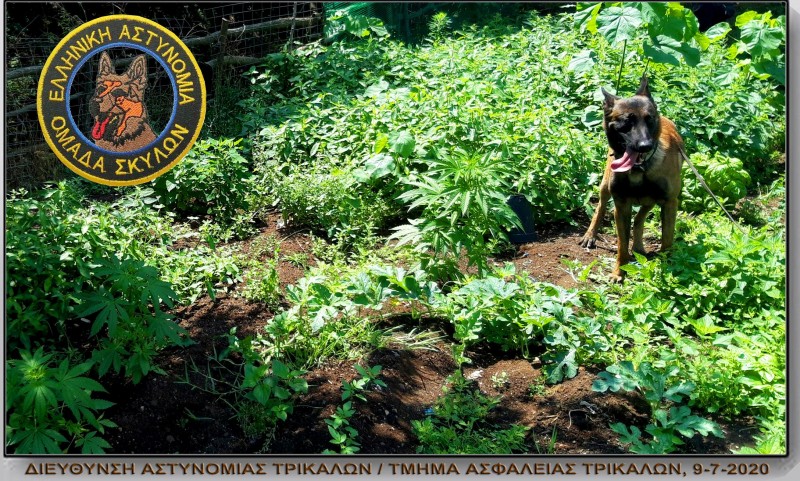 Με τη συνδρομή του αστυνομικού σκύλου ανίχνευσης ναρκωτικών «FLEX» εντοπίστηκαν σε οικία και σε ποιμνιοστάσιο των δραστών (48) δενδρύλλια κάνναβης