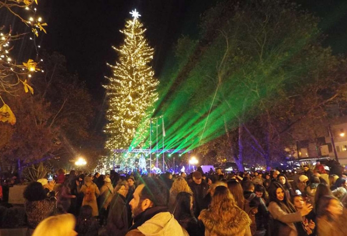 Τρίκαλα: Φωταγωγείται το υψηλότερο φυσικό χριστουγεννιάτικο δέντρο της χώρας
