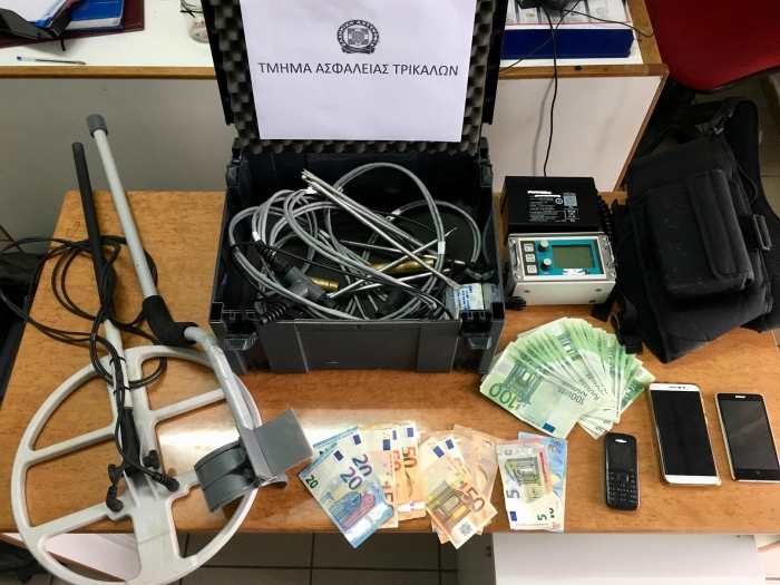 Κατασχέθηκαν, μεταξύ άλλων, (49) χαρτονομίσματα των (100) ευρώ το καθένα, αμφιβόλου γνησιότητας, ένας ανιχνευτής μετάλλων, καθώς και το συνολικό χρηματικό ποσό των (475) ευρώ