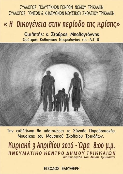 Ο Σύλλογος Πολυτέκνων Ν. Τρικάλων σε συνεργασία με το Σύλλογο Γονέων και Κηδεμόνων του Μουσικού Σχολείου Τρικάλων θα πραγματοποιήσουν εκδήλωση με θέμα: