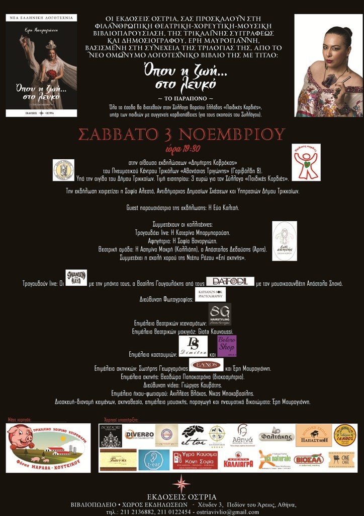Α.Γ.: Στις 3 Νοεμβρίου παρουσιάζεται στα Τρίκαλα το «Όπου η Ζωή στο Λευκό». Τι περιμένουμε από αυτή την εκδήλωση;